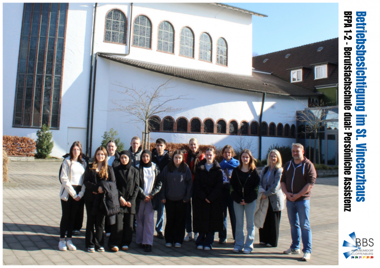 08.03.2026 – Vor kurzem besuchte die Klasse BFPA 1-2 (Berufsfachschule – Persönliche Assistenz) die Stiftung St. Vincenzhaus in Cloppenburg. Ziel der Exkursion