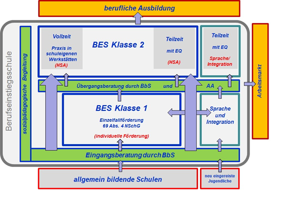 Klassenbezeichnung: BEGSSI – Berufsbereich: Gesundheit und Soziales – Dauer: 1 Jahr – Praktikum: in Abhängigkeit vom Sprachstand – Zugangsvoraussetzung: Jugendliche zwischen 16 und 19 Jahren mit erhöhtem Sprachförderbedarf („Deutschlerner/innen“)
