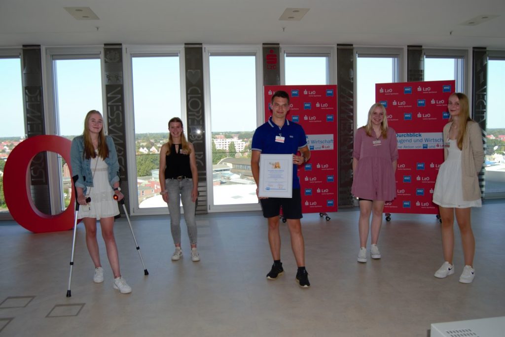 Beim Projekt „Durchblick – Jugend und Wirtschaft im Nordwesten“ haben Julia Emke, Marie Ostermann, Marin Alexander Welker-Altegoer, Bente Ahrens und Theresa Johanna Stammermann mit ihrer Projektarbeit den dritten Platz erzielt.