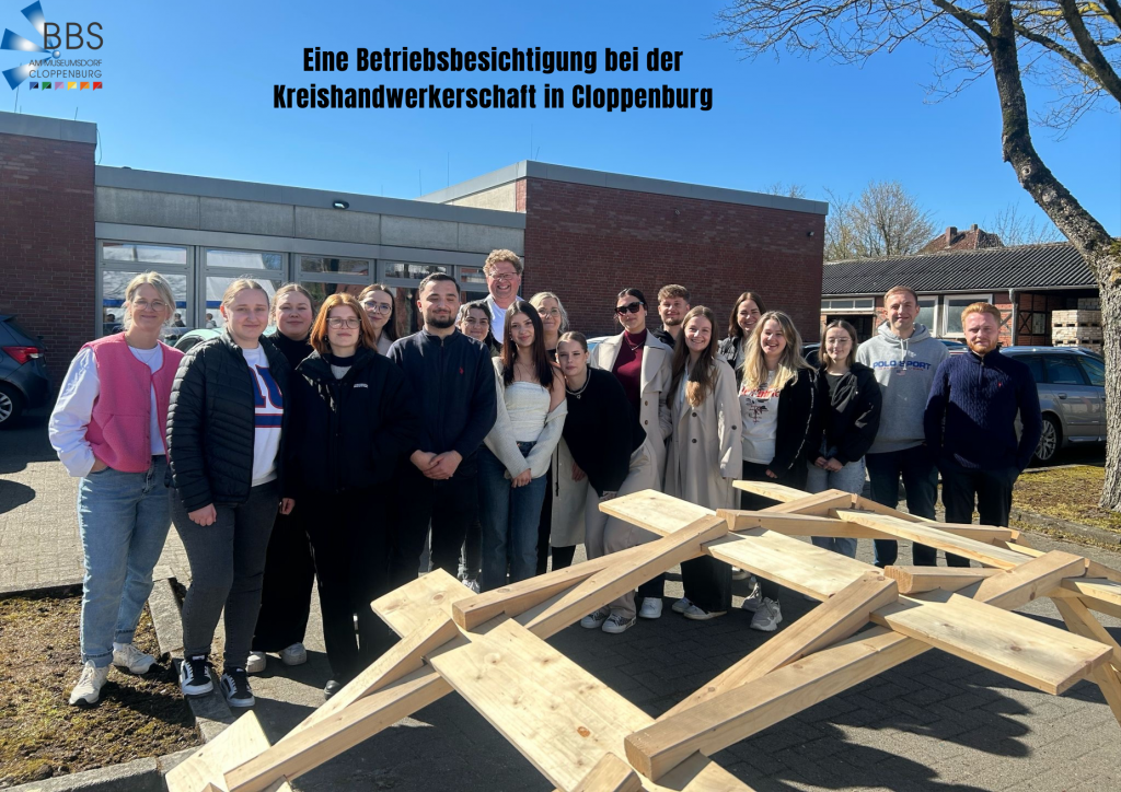 Vor kurzem besichtigten die Schüler*innen der Klasse BSWBM 2-1 (Kaufleute für Büromanagement, 2. Ausbildungsjahr) die Kreishandwerkerschaft in Cloppenburg – begleitet von Klassenlehrerin Carina Deters und Abteilungsleiterin Sabrina Loxen sowie Mareike Junghans von der Region des Lernens.