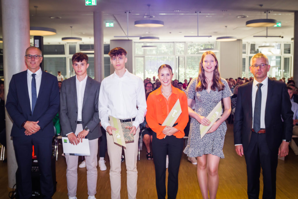 Beeindruckt von der Leistung der Abiturientia 2023 zeigte sich Schulleiter Günter Lübke in seiner Rede: Von den 108 Absolvent*innen schafften zehn Schüler*innen einen Notendurchschnitt mit einer Eins und 60 Schüler*innen mit einer Zwei vor dem Komma. Diana Grischin und Jana Willenborg erzielten mit einer 1,2 die beste Abiturnote. Drittbester wurde Maurice Meyer mit einem Abiturschnitt von 1,5. Zudem wurde er von der Gesellschaft für Informatik für herausragende Leistungen in der Informatik geehrt. Auch Jana Willenborg bekam für ihre herausragenden Abiturleistungen im Fach Mathematik eine Auszeichnung und erhielt den Abiturpreis der Deutschen Mathematiker-Vereinigung. Für herausragende sportliche Leistungen und für sein soziales Engagement bekam Niklas Tepe den Pierre-de-Coubertin-Preis.