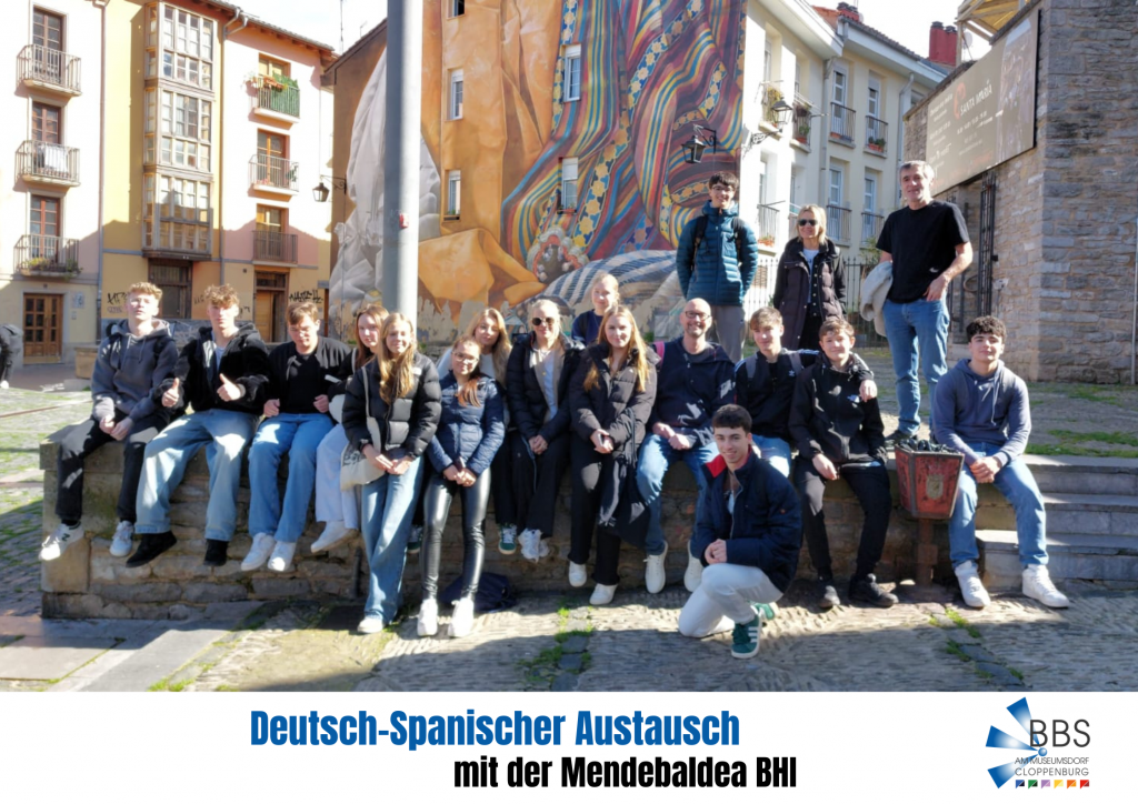 Auch in diesem Schuljahr boten die Spanischlehrer*innen Georg Stolle, Jessica Liesert und Wiltrud Thobe in den 11. und 12. Klassen des Beruflichen Gymnasiums einen Spanisch-Austausch an. Neuer Projektpartner war die Inklusionsschule Mendebaldea BHI in Vitoria-Gasteiz. Im Frühjahr absolvierten zwölf Spanisch-Lerner*innen den ersten Teil des Austausches und verbrachten acht Tage in den Gastfamilien ihrer spanischen Projektpartner.