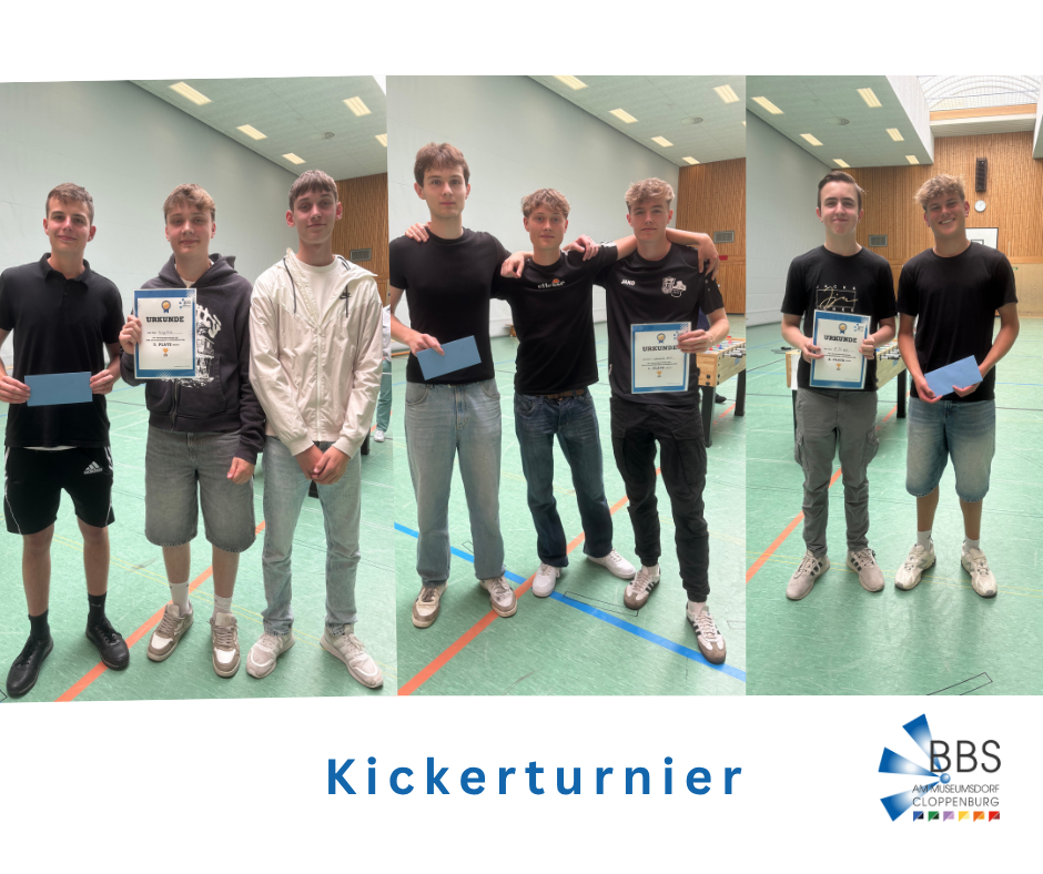 Du warst nicht dabei und bist im nächsten Jahr noch Schüler*in unserer Schule? Dann lasse es dir im nächsten Jahr nicht entgehen und mache beim Kickerturnier mit!