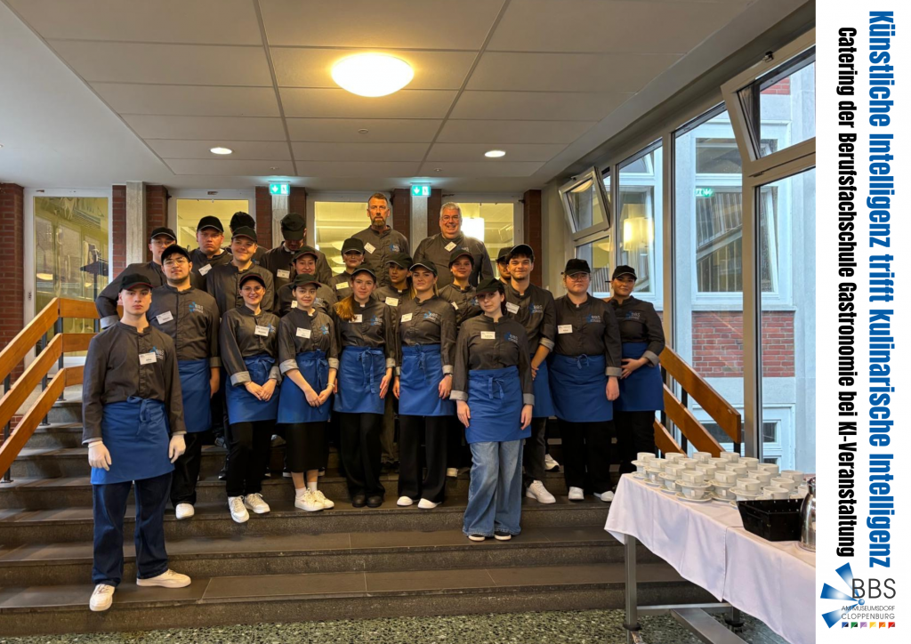 Vor kurzem fand die Veranstaltung „Crashkurs KI – Fahrplan für Unternehmen im Technologiewandel“ in den BBS am Museumsdorf statt. Die Wirtschaftsförderer des Landkreises Cloppenburg und der Stadt Cloppenburg luden hierzu kleine und mittlere Unternehmen, Start-Ups, Gründungsinteressierte, Führungskräfte, IT- und Digitalverantwortliche ein. Für das leibliche Wohl der rund 60 Gäste sorgten die Schüler*innen der Berufsfachschule Gastronomie sowie der Abteilungen Hauswirtschaft und Pflege.