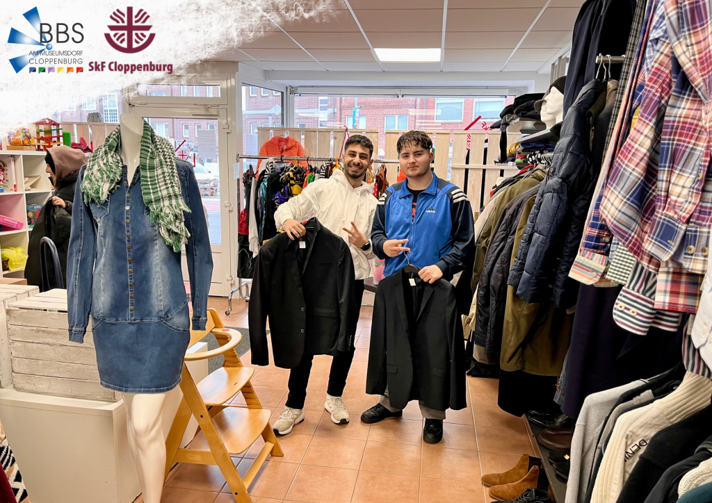Im Zuge dessen besuchte die Klasse gemeinsam mit ihren engagierten Lehrkräften Julia Kemper und Hildegard Haase den SkF Laden in Cloppenburg. Der SkF Laden ist ein soziales Kaufhaus, das durch ehrenamtliche Helfer*innen betrieben wird. Es richtet sich an alle und bietet eine breite Auswahl an gut erhaltenen, gebrauchten Artikeln – von Kleidung und Wäsche über Bücher und Spiele bis hin zu Haushaltswaren. Auch Babybedarf wie Kinderwagen, Kinderbett und andere Erstausstattungsgegenstände sind dort erhältlich. Nach einer spannenden Einführung durch die Mitarbeiter*innen, die den Schüler*innen einen Einblick in dieses besondere Einkaufserlebnis gaben, machten die Jugendlichen eine kleine Shoppingtour. Sie zeigten sich begeistert vom Konzept des Ladens! Ein großes Dankeschön an den SkF Laden in Cloppenburg für die inspirierenden Einblicke!