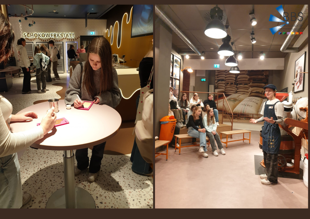 Eine besondere Erfahrung war auch die Verkostung außergewöhnlicher Schokoladensorten: Zwei Schüler*innen probierten Schokolade mit Insekten – ein „crunchiges“ und überraschend leckeres Geschmackserlebnis! Andrea Hilmes berichtete zudem hinterher: „Der Besuch des Chocoversums hat sich definitiv gelohnt! Weitere Betriebsbesichtigungen werden für die BGÖ bestimmt folgen – es gibt noch viele andere Lebensmittel zu entdecken!“